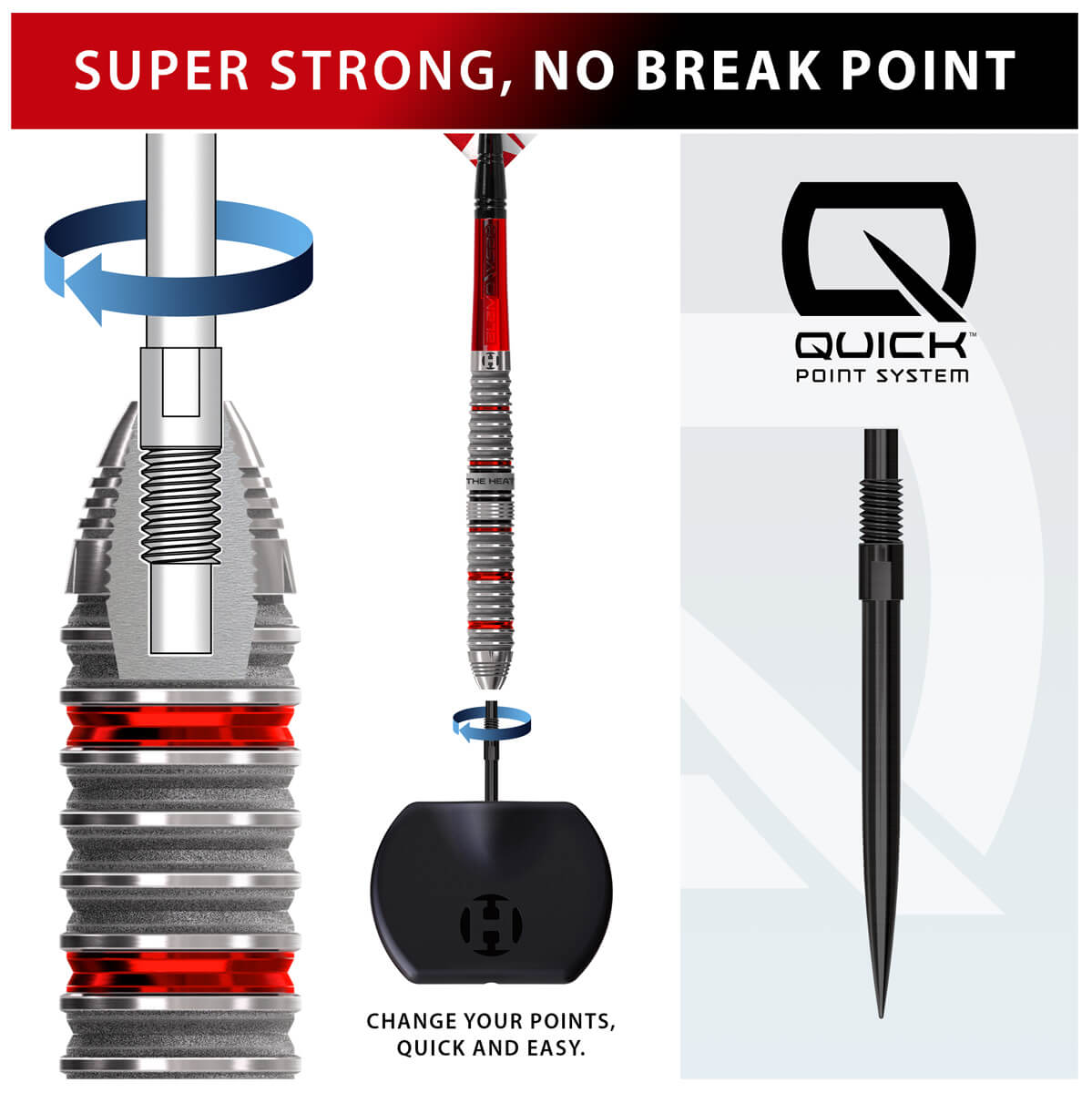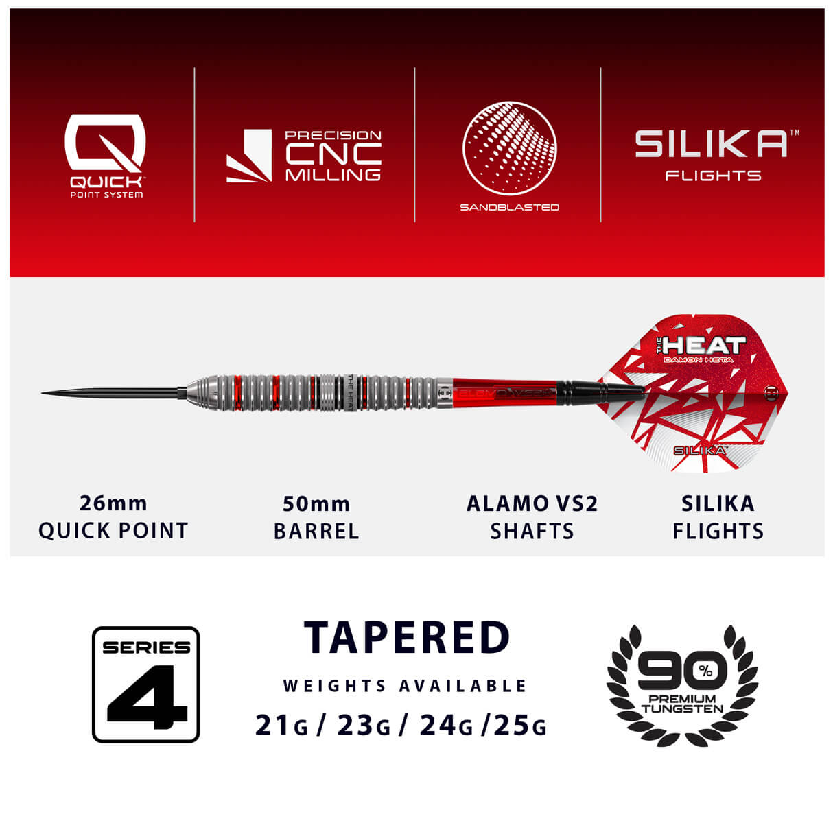 Die Serie 4 der Heat verfügt außerdem über die Harrows Quick Point-Technologie, mit der Spieler Spitzenlänge