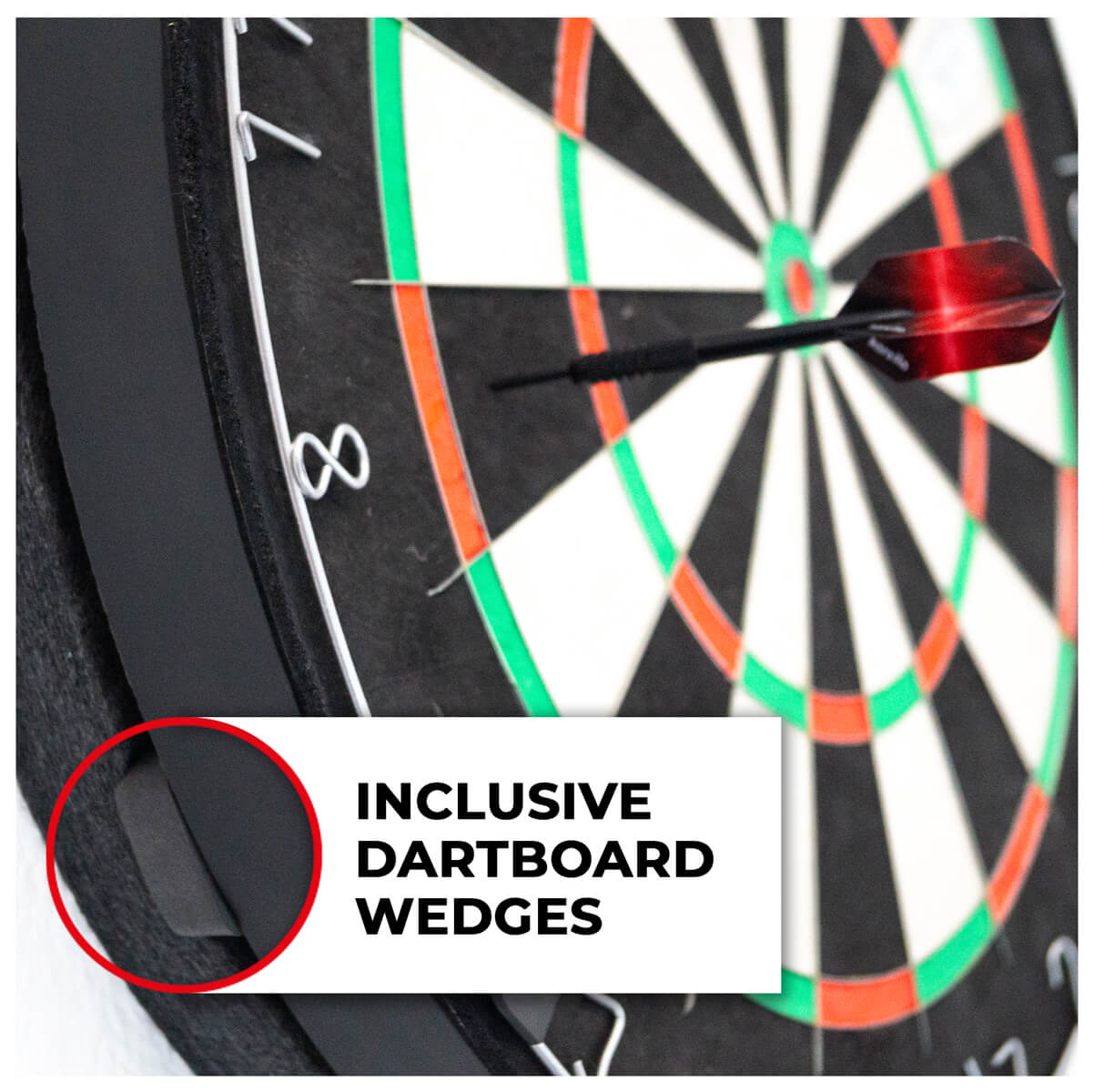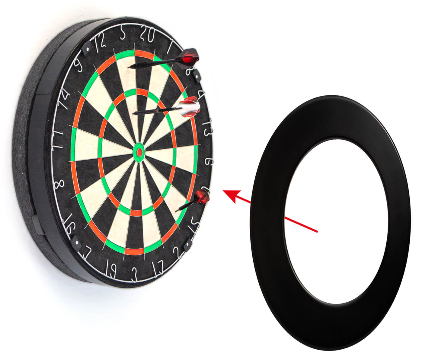 Lieferumfang: Schallschutzkern, Schallschutzring Ø45 cm, 3 Dartboard Justierkeile, Dübel und Schrauben. (Dartboard ist nicht im Lieferumfang enthalten)