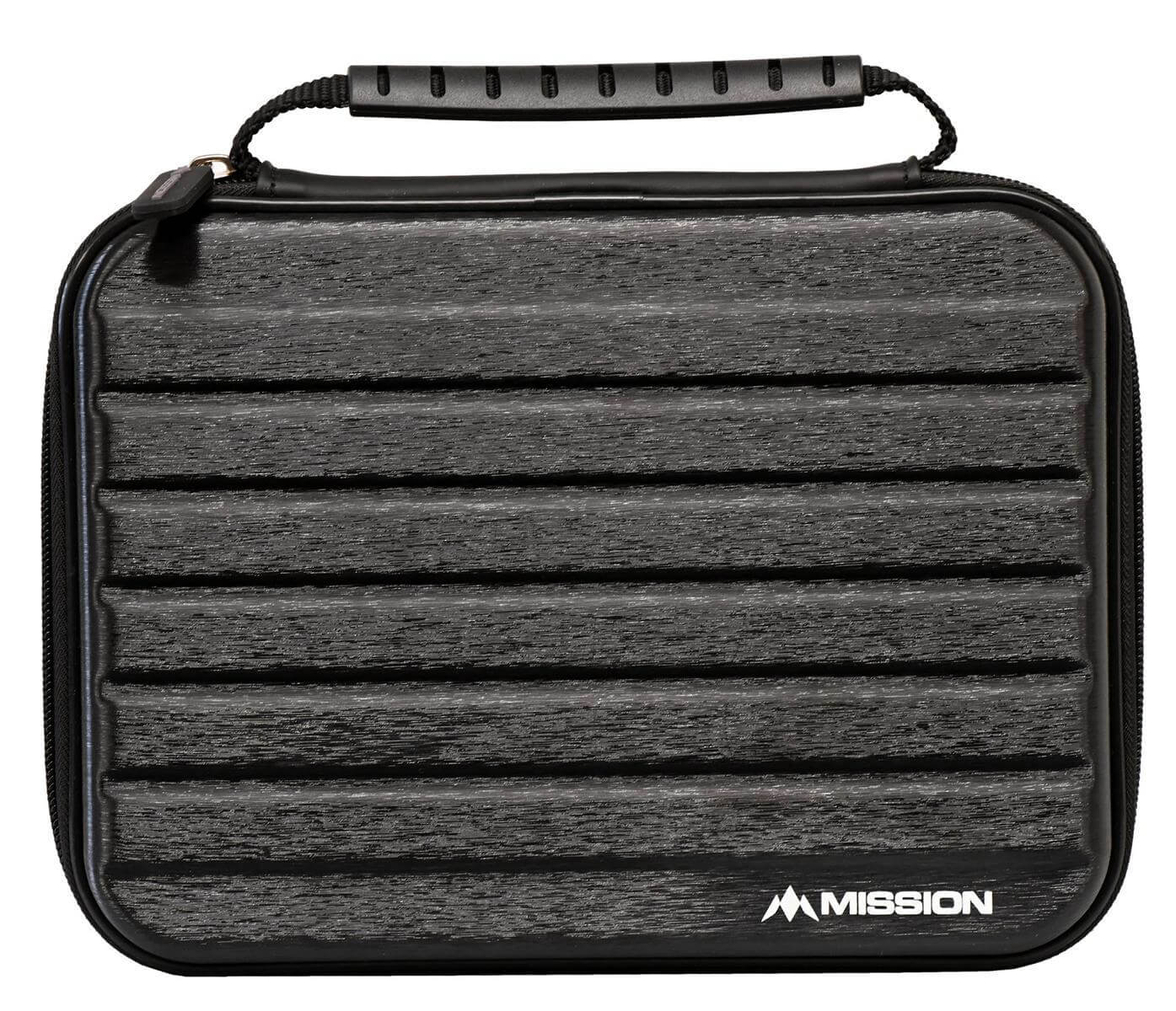 Das Mission ABS-4 in Schwarz ist ein schlanker Dartkoffer aus strapazierfähigem metallischem ABS-Material