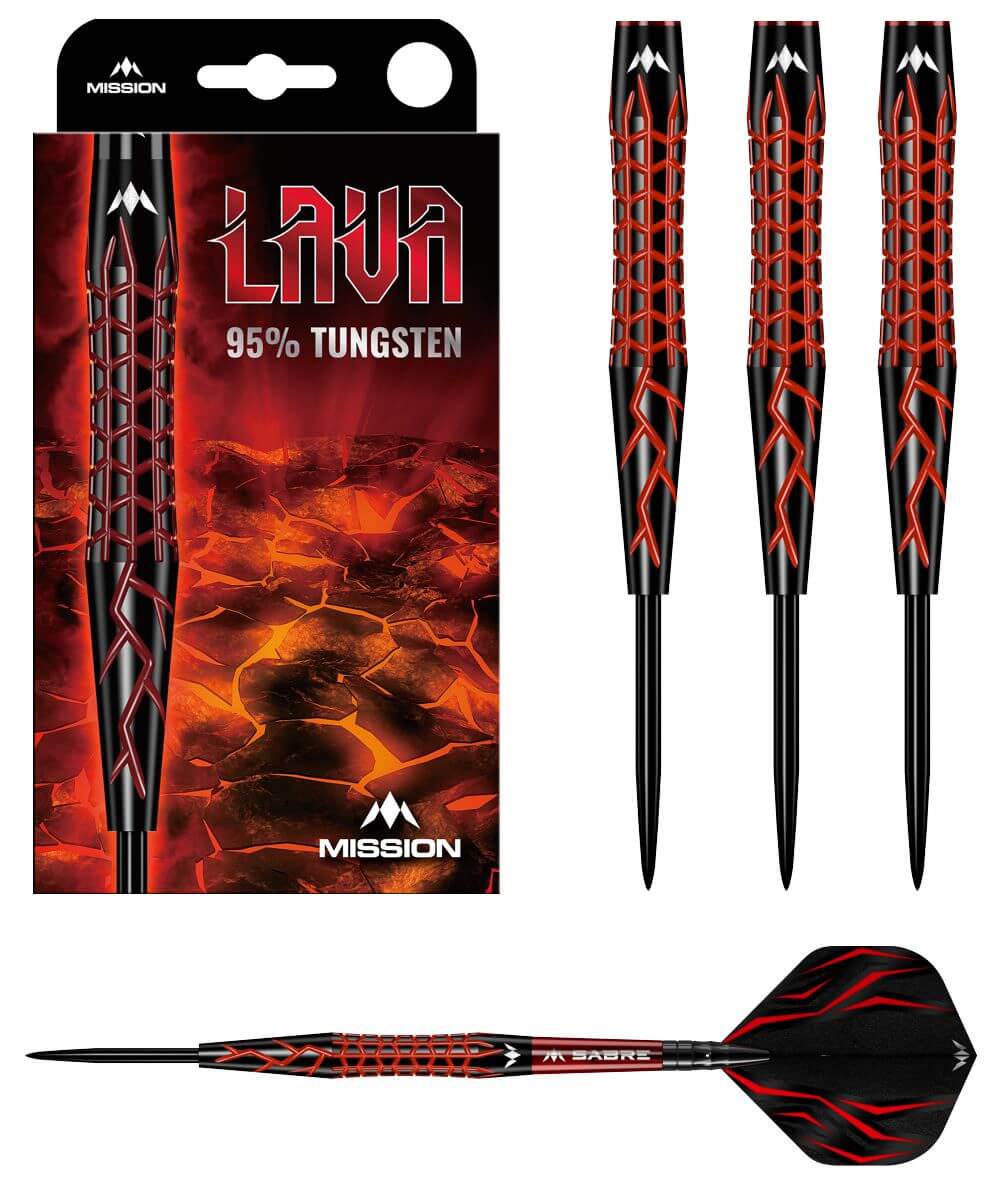 Mission Lava Tungsten Steeldarts – 95 % Tungsten – Schwarz & Rot galvanisiert.
