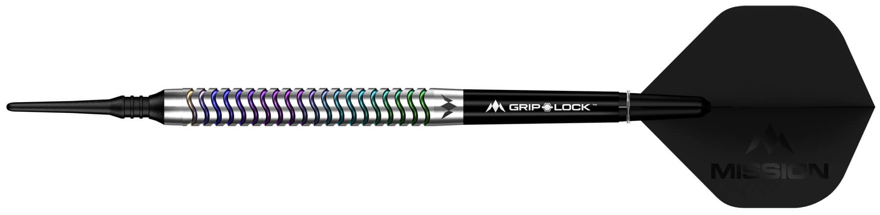 Der Mirage Dart wird komplett mit einem Set schwarzer Mission GripLock Shäfte (Größe Tweenie) und