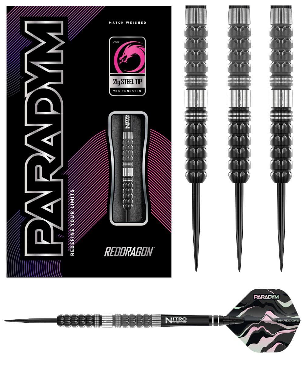 mit dem strukturierten Hochenergiegriff des Paradym Tapered Steeldart.