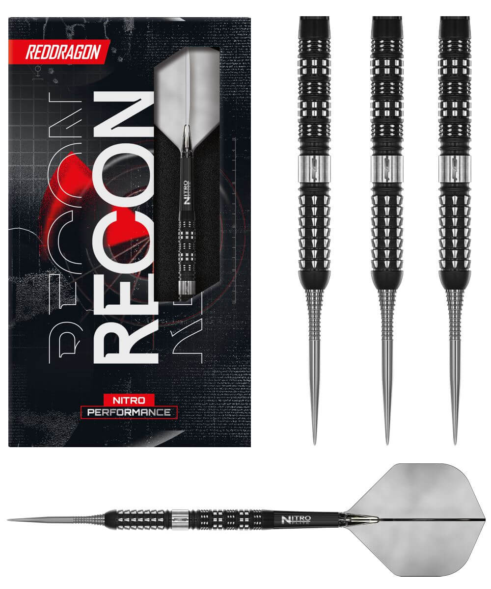Beherrsche die Abwurflinie mit Red Dragon Recon Parallel Steeldart – präzisionsgefertigt in markantem Schwarz und Silber.