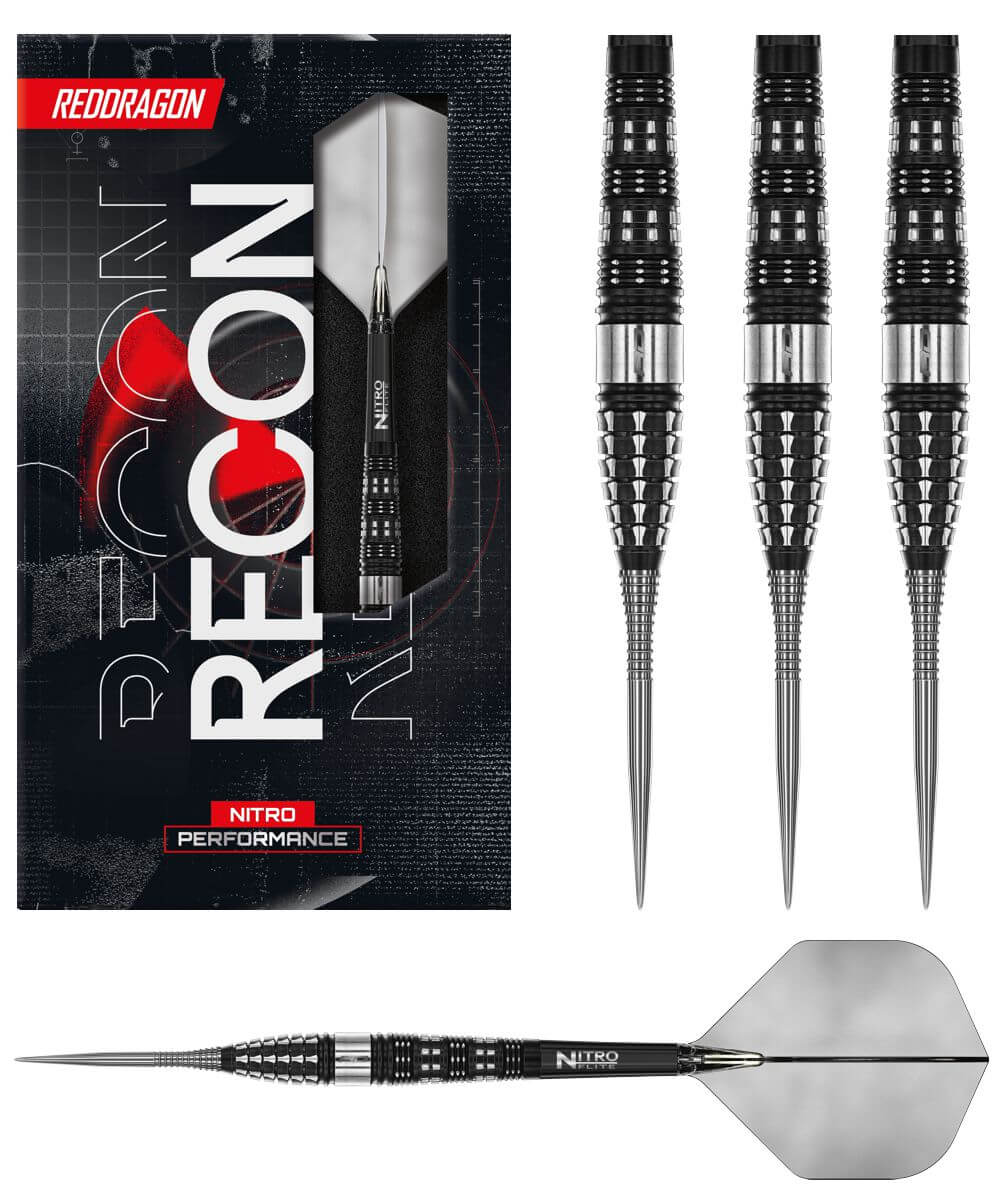 Beherrsche die Abwurflinie mit Red Dragon Recon Torpedo Steeldart – präzisionsgefertigt in markantem Schwarz und Silber.