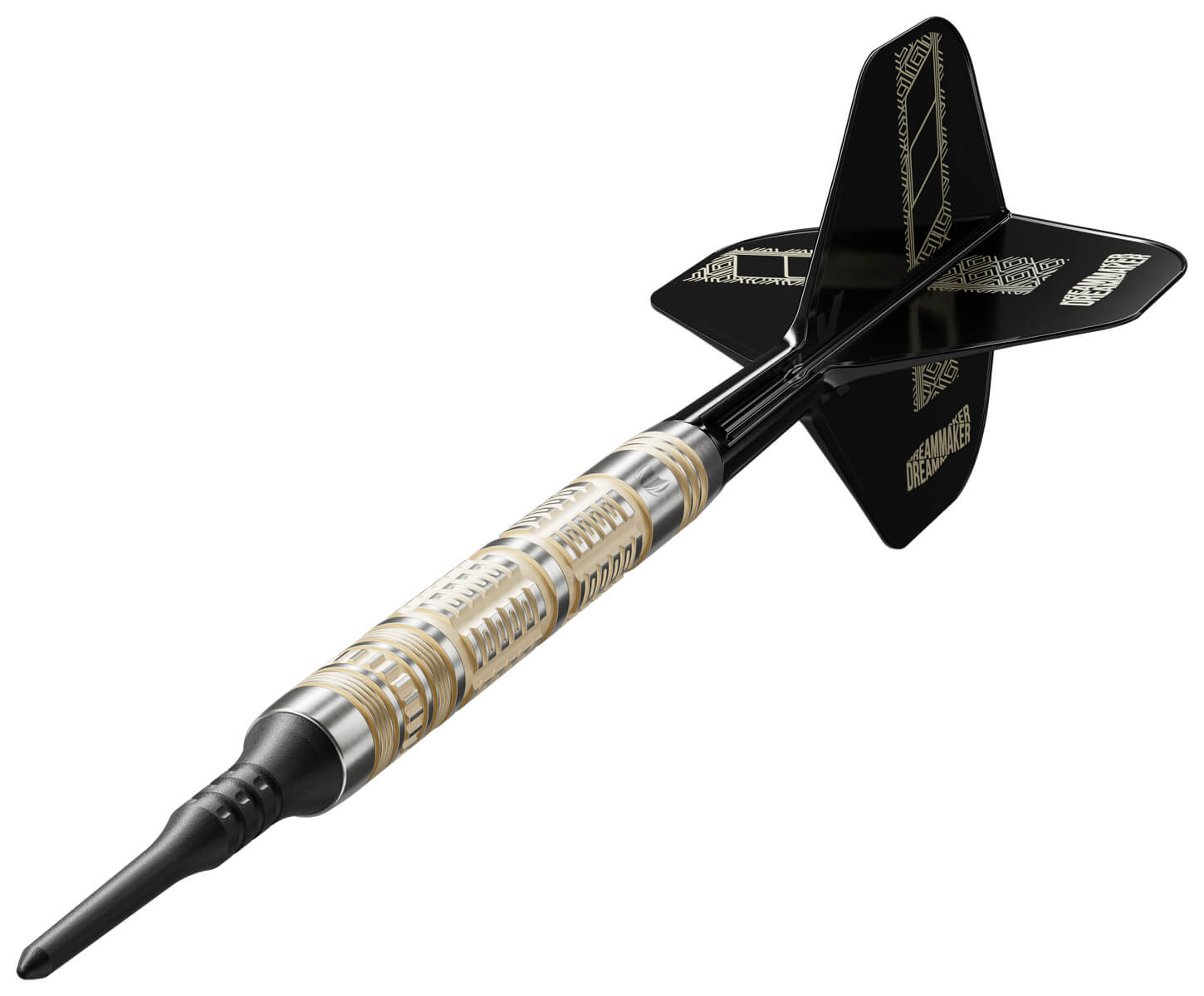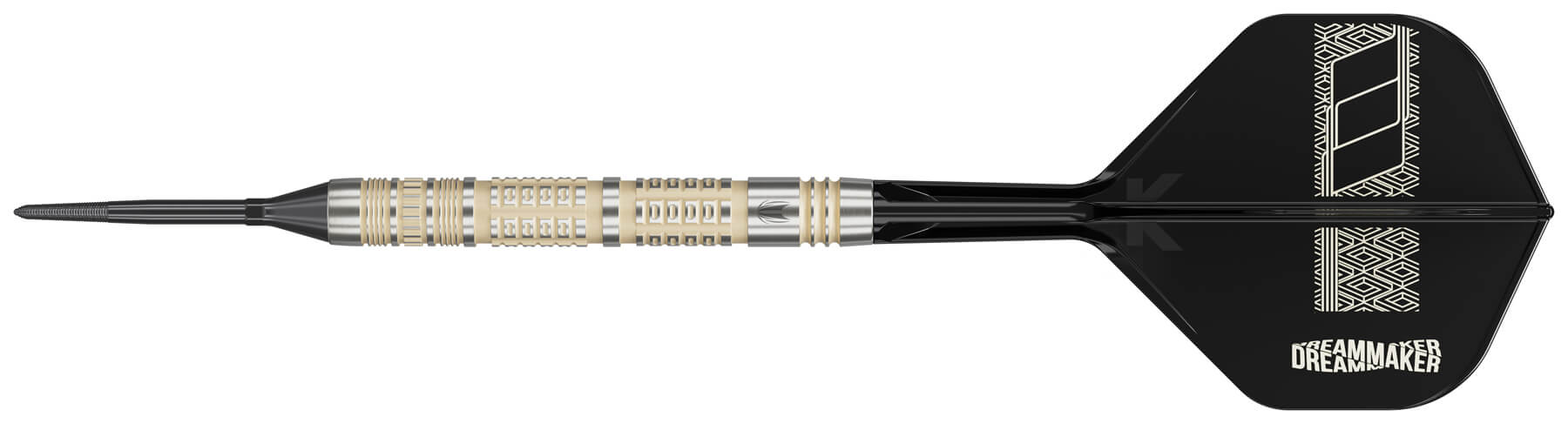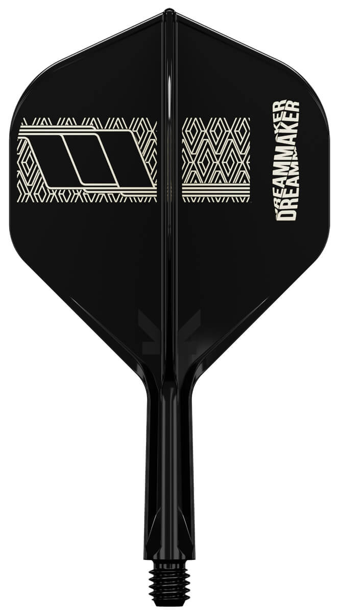 Die schwarzen Flights sind mit Dimitris charakteristischem „DreamMaker“-Logo bedruckt