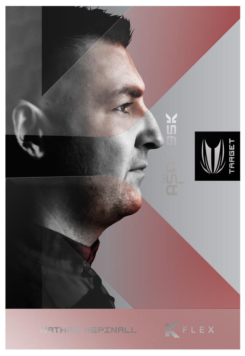 wird durch exklusive K-Flex No.2 Short (19 mm) Flights und Schäfte mit Nathan Aspinalls „The Asp“-Branding abgerundet.