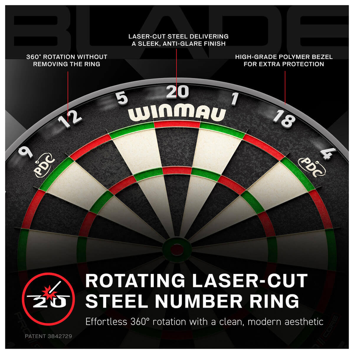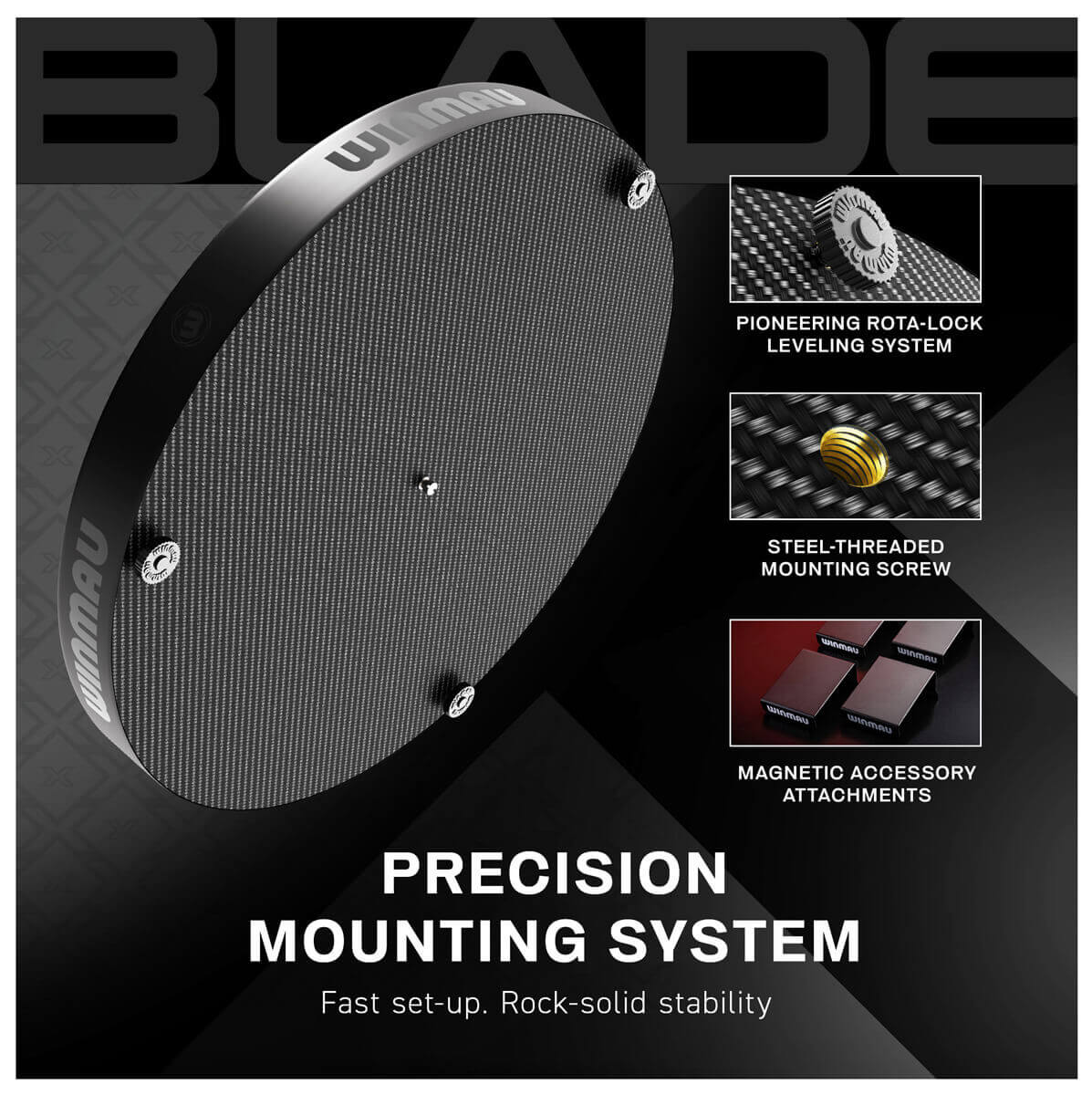 Eingefasst in eine hochwertige Polymer-Einfassung für optimalen Aufprallschutz, verleiht Blade X dem Darts eine klare, moderne Optik.